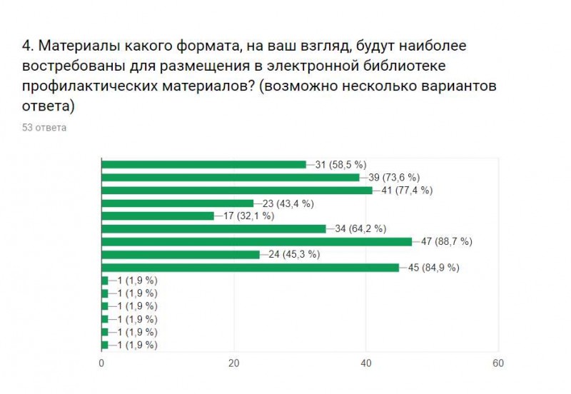 аналитической (81,1%) в формате графических материалов (84,9%), видео (88,7%), статей