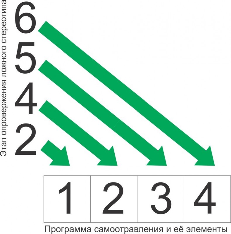Рис. 1.Схема воздействия опровержения стереотипов на программу самоотравления